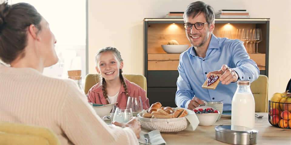Beautiful or practical? Your Venjakob dining table gives you both – perfectly tailored to your life. To meet all your needs, our designers work not only with their favorite material, solid wood, but also with glass and metal. With us, you choose craftsmanship along with innovative functionality, like a table that easily extends. Perfect for everyday life, but never ordinary. Discover the highlights of a vibrant dining culture.