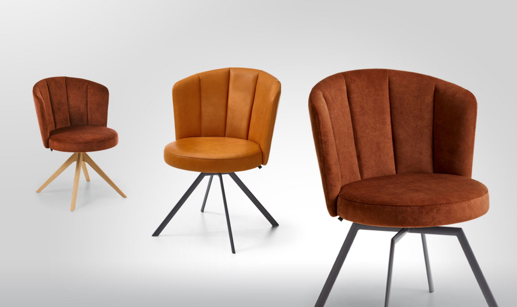 Available with fabric and leather cover, swivel and/or rocking function optionally available.