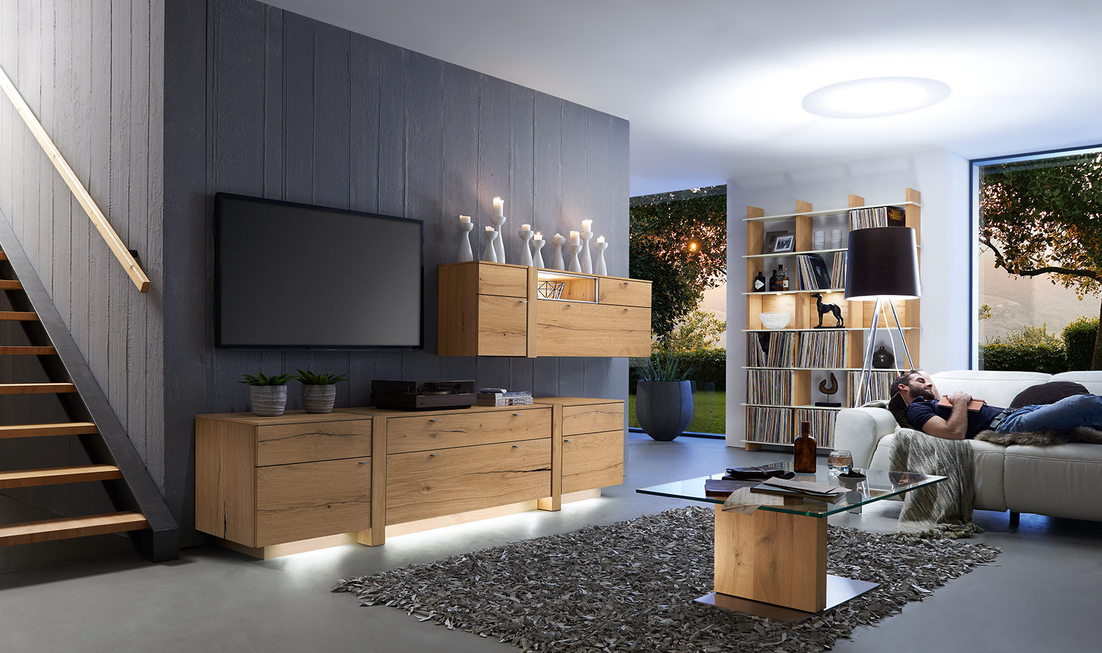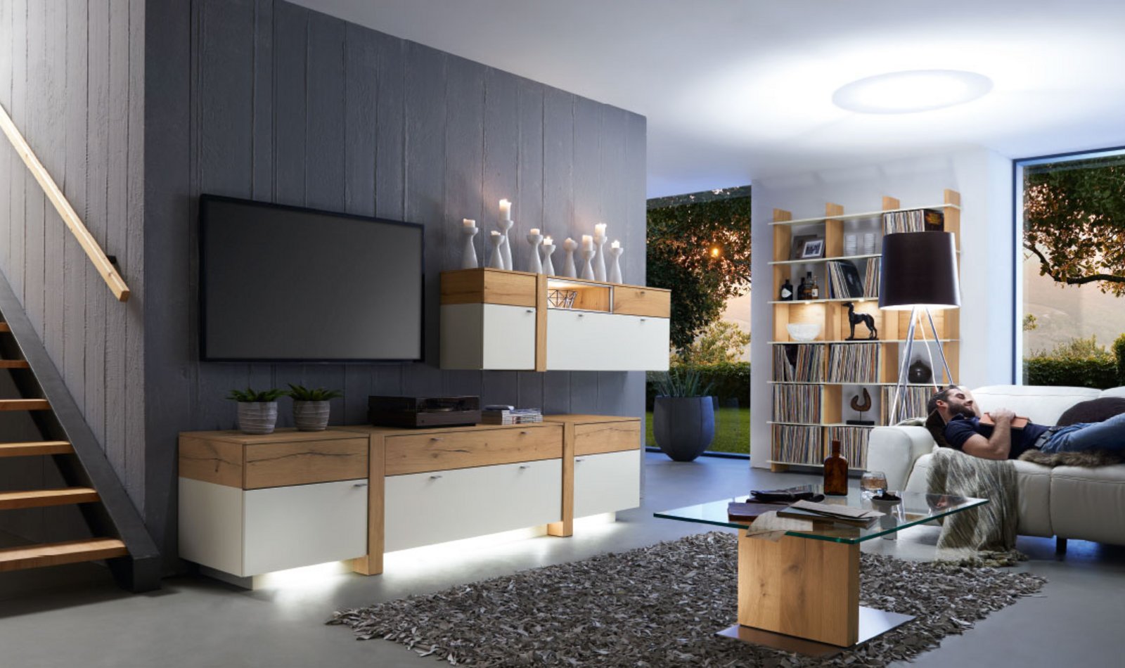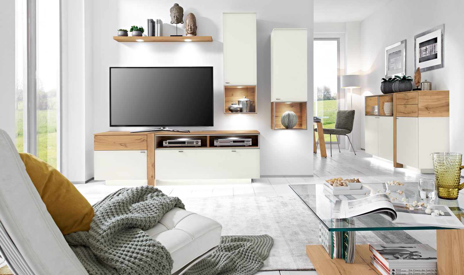 ALBERO brings the finesses of modern furniture design into the living- and dining room. The horizontal fronts of the range are accompanied elegantly by vertical wooden elements – the base plinth is slightly inset under the carcase. This give sideboards, glass cabinets and wall units a floating character. Furniture design with a special twist – ALBERO will delight you for many years!