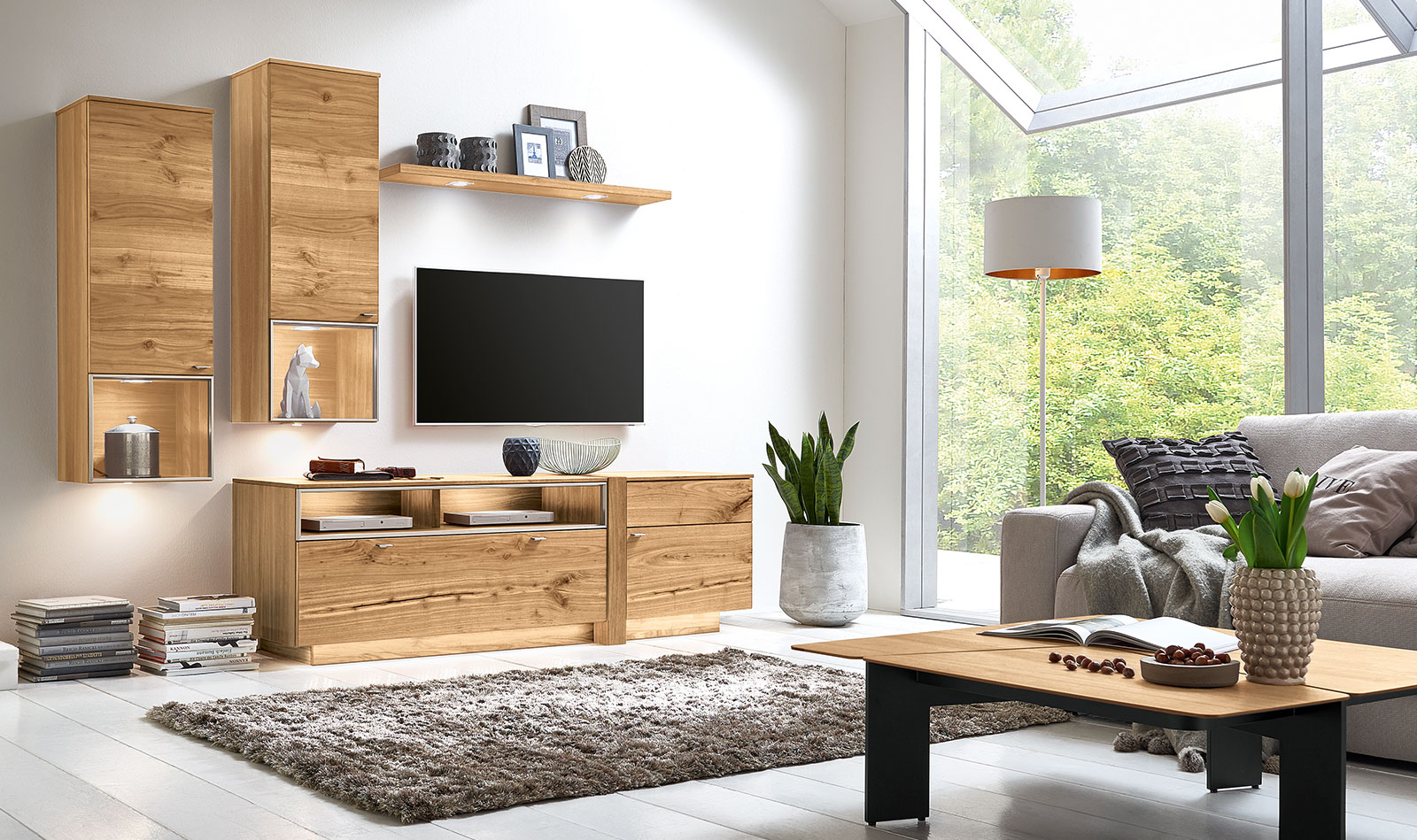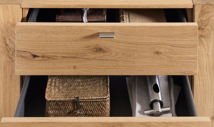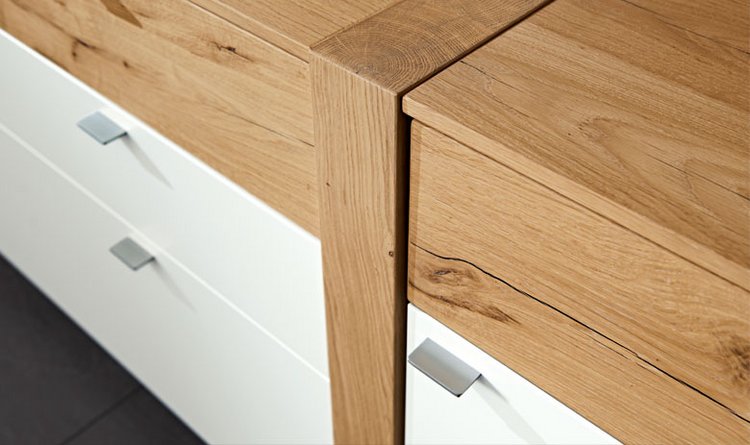 Horizontal fronts consciously interrupted with vertical wooden elements, newly partitioned and made to float: Our designers are proud of the result. ALBERO furniture follows this design philosophy throughout, has a very special optical effect and at the same time takes the foreground with the exquisite combination of lacquer and real wood veneer. Whether a sideboard, highboard or glass cabinet – you can count on real design highlights.