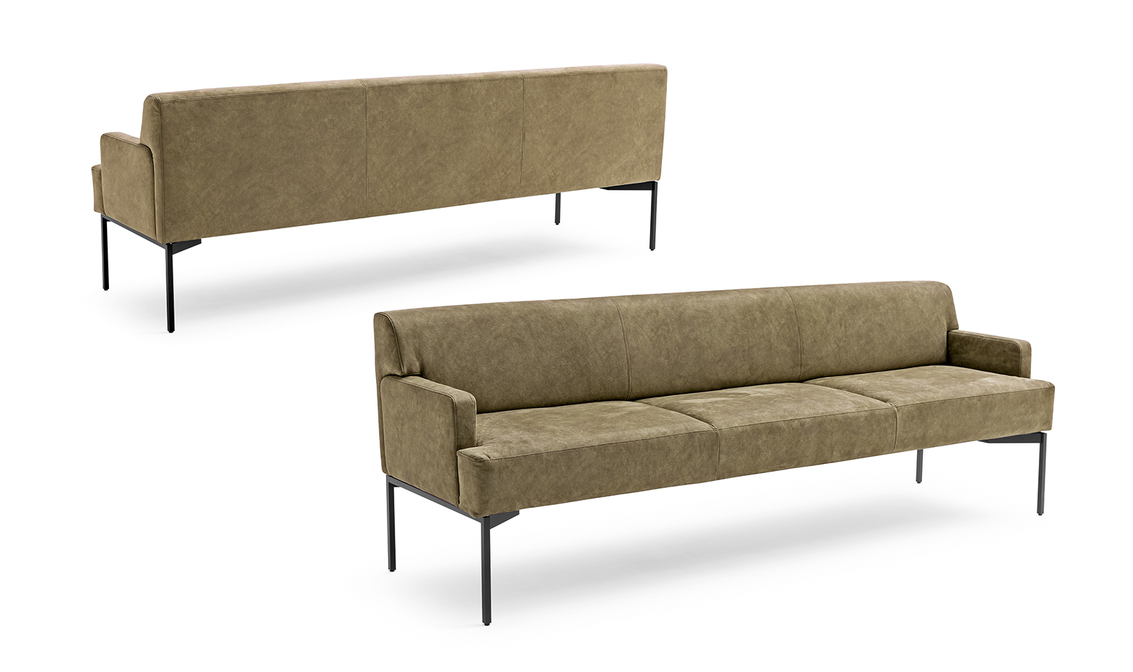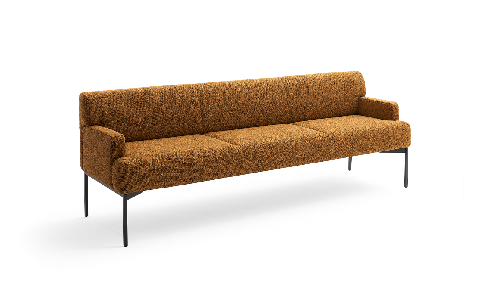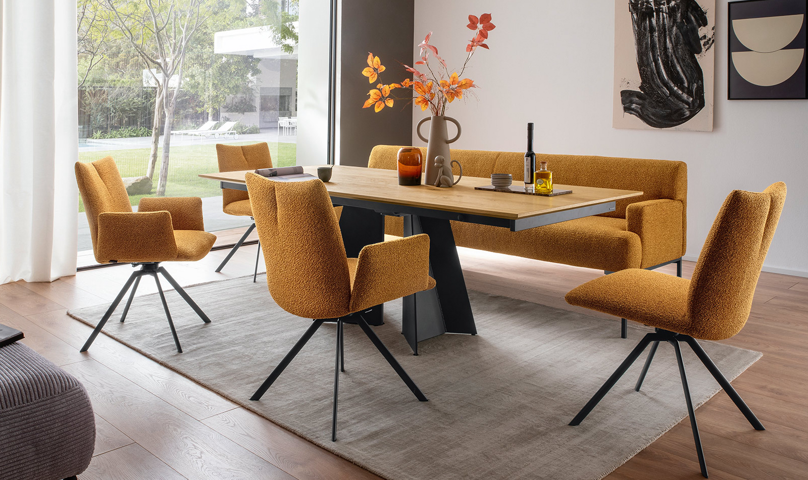 Die extra bequeme Polsterbank mit Armlehnen schafft ein zeitlos modernes Ambiente.