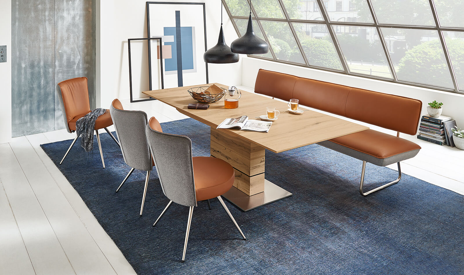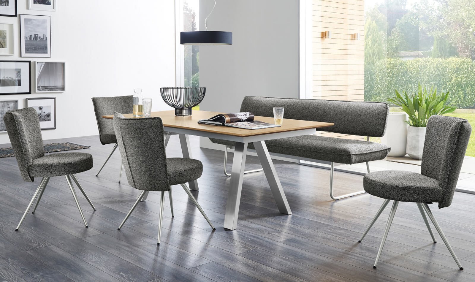 Sie bringt Menschen zusammen. Sie setzt Akzente in offenen Essbereichen oder verleiht Esszimmern ein Extra an Gemütlichkeit. Ob mit Leder oder Stoff bezogen, farblich in uni oder Bicolor-Optik: ONYX* schafft Flair.