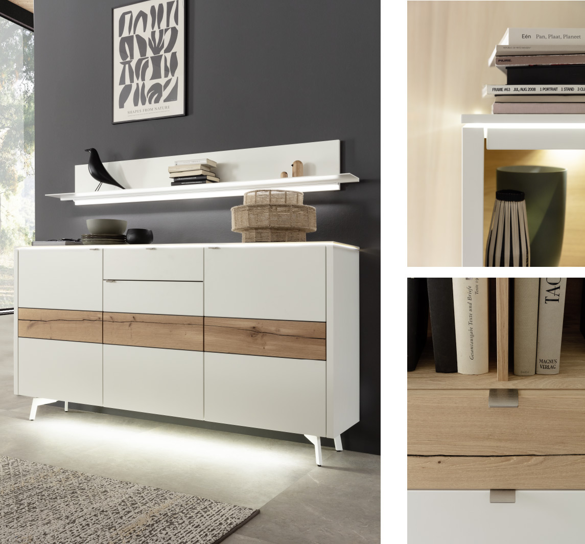 Mit ihrem kristallweißen Lack und dem dunklen Anthrazit setzt GAME einen neuen Maßstab in Sachen Modernität und Ästhetik. Ob als Sideboard, Highboard oder Vitrine – diese Design-Highlights sind echte Hingucker, die sich nahtlos in jede zeitgemäße Einrichtung einfügen.