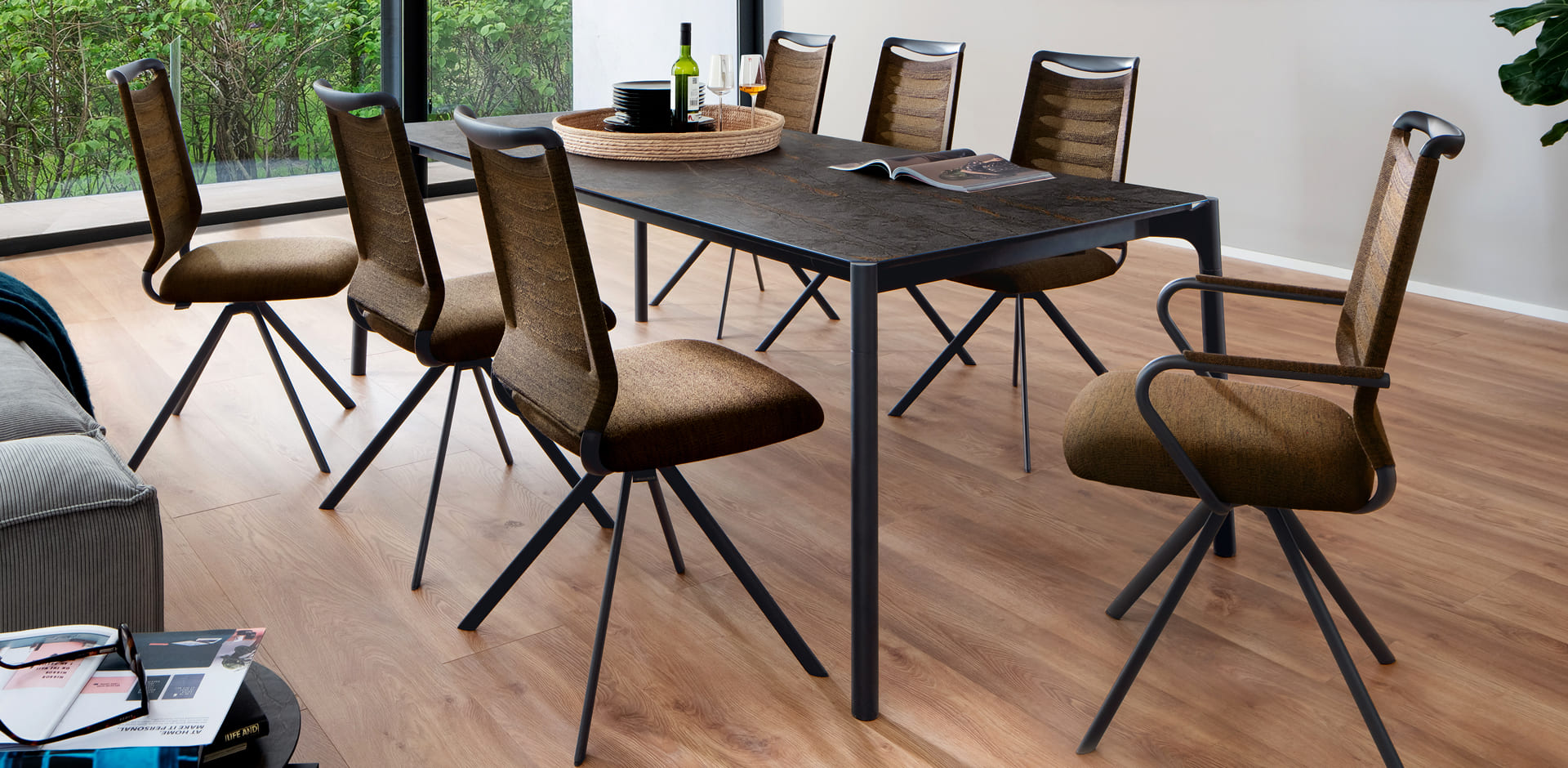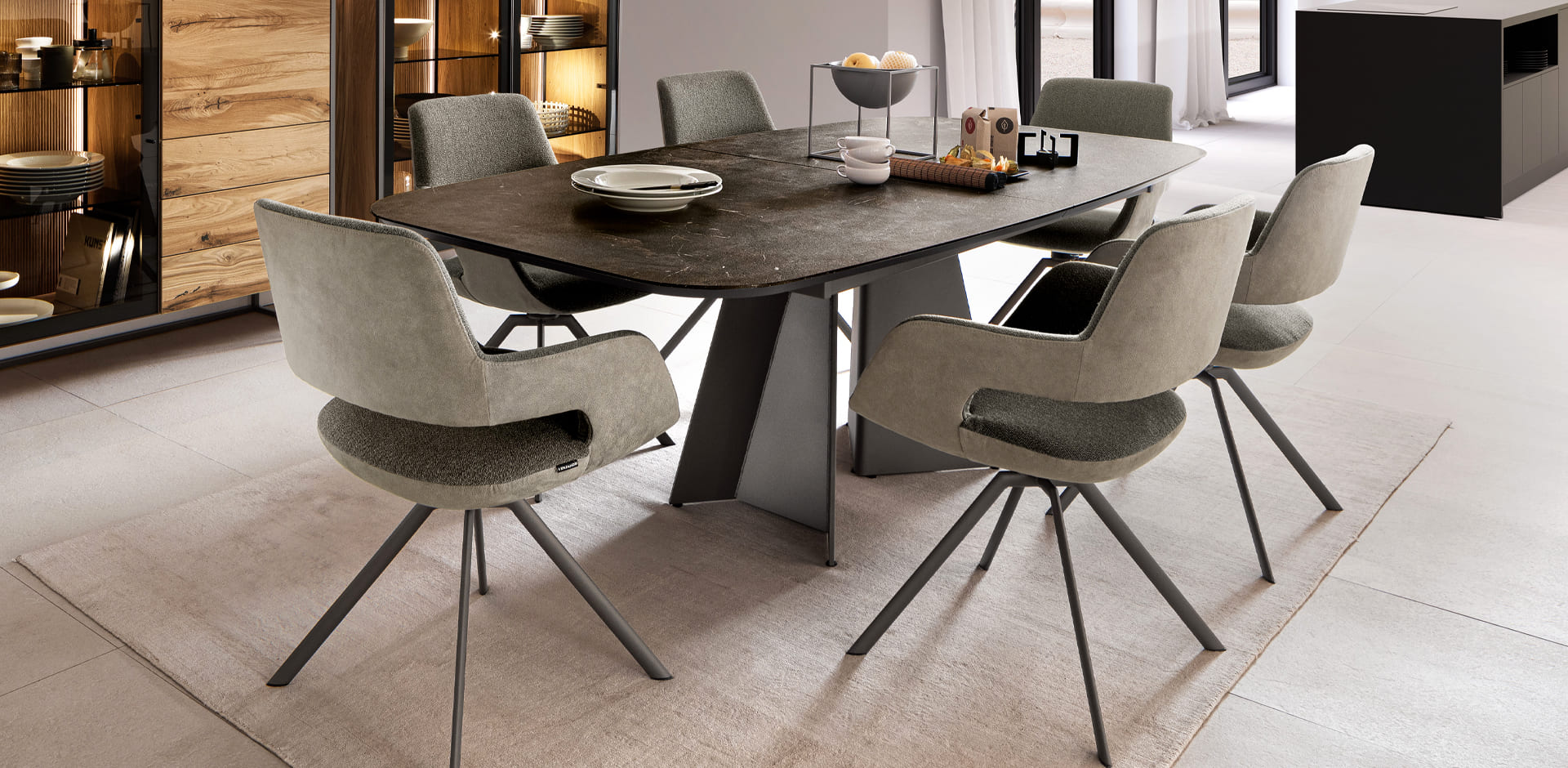 Bei uns kommt Keramik nicht nur als Geschirr auf den Tisch: Die neuen Keramik-Tischplatten erobern den Essplatz – gemeinsam mit der Material-Innovation Dekton.