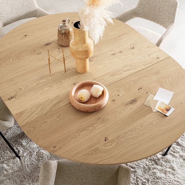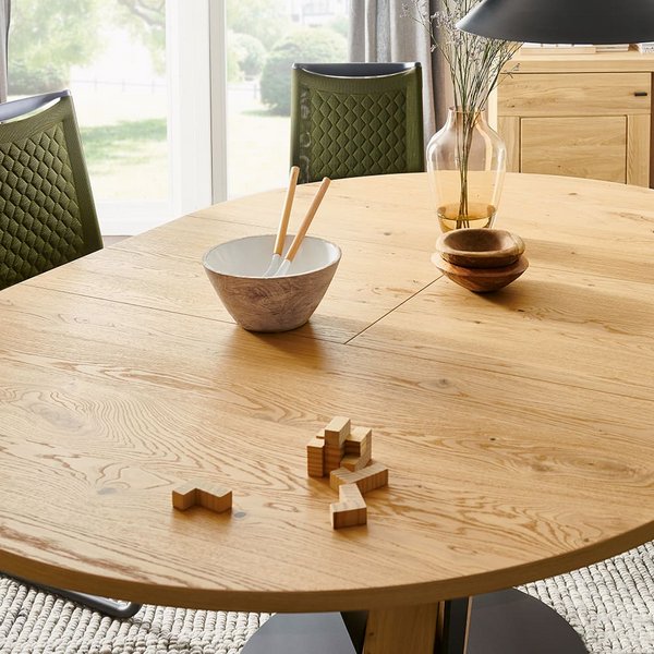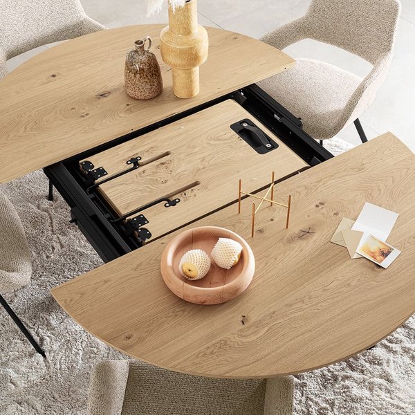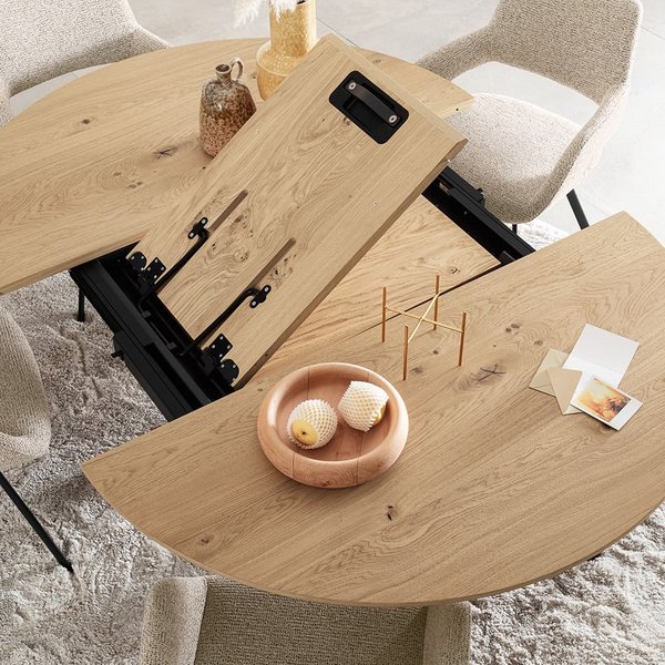 Rund geht auch größer. Unsere Tische können, was nicht selbstverständlich ist: Wachsen. Mit unserer unsichtbaren Einlage klappt’s im Handumdrehen.