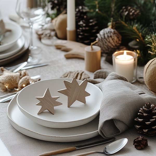 sondern meist nach dem Motto: Weniger ist mehr. Auf einer hochwertigen Leinentischdecke kommen handwerkliches Geschirr, schlichte Kerzen sowie Dekoelemente aus Holz und der Natur zum Einsatz. Weil dabei alles bewusst in hellen, sanften Tönen gehalten ist, wirkt der nordische Stil bei allem Minimalismus hell und freundlich.