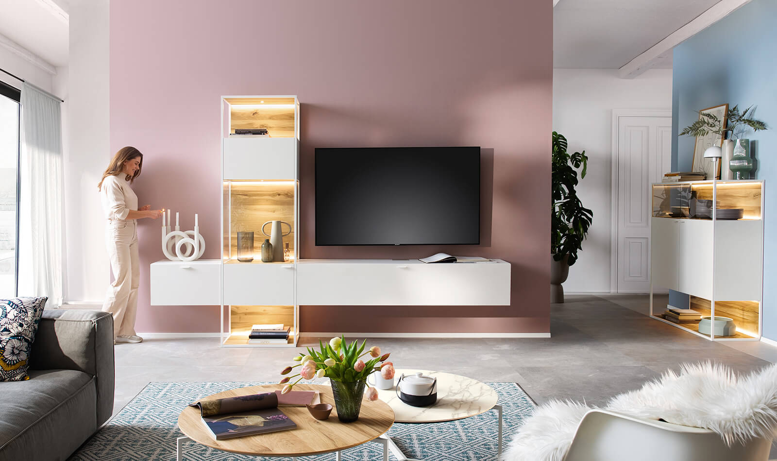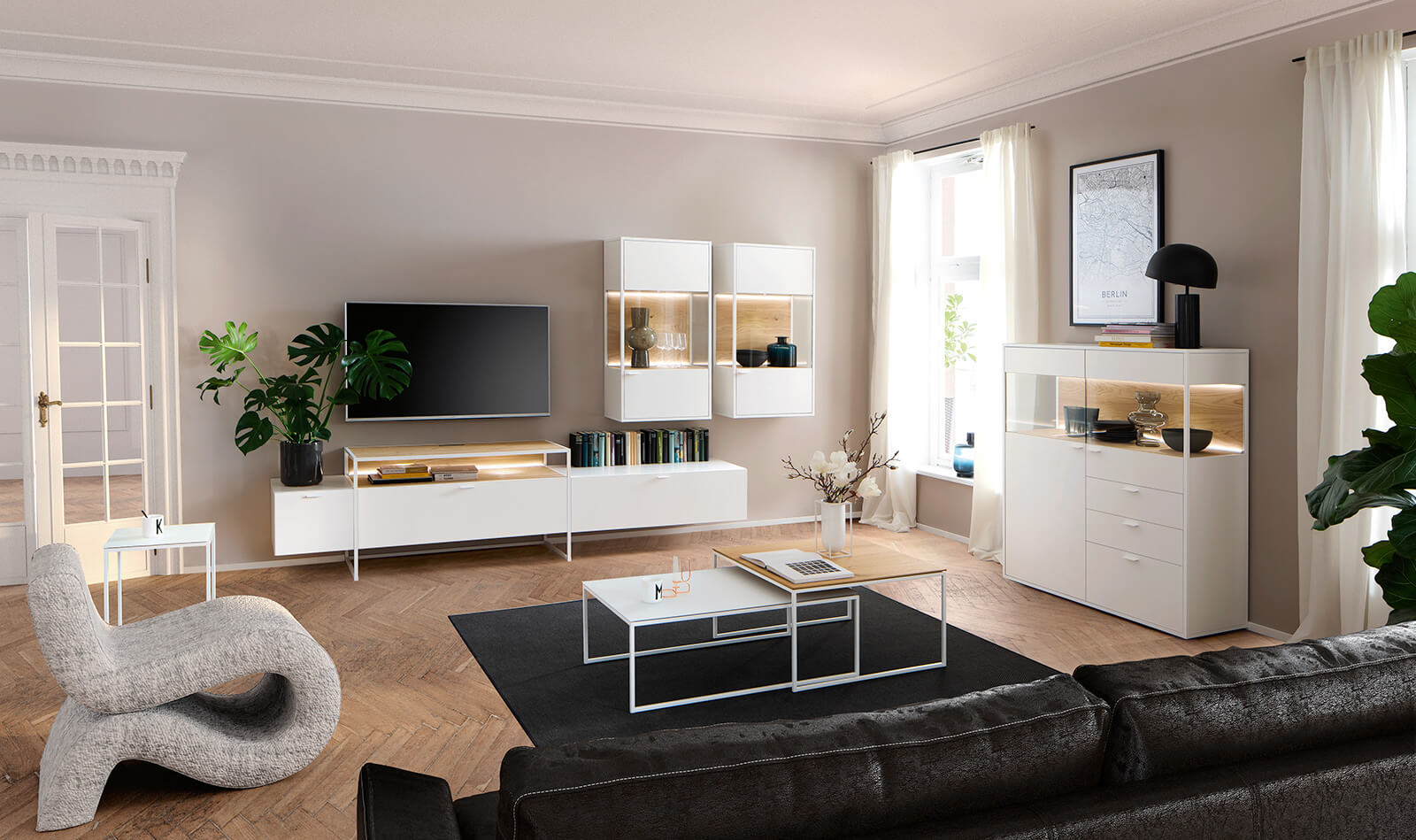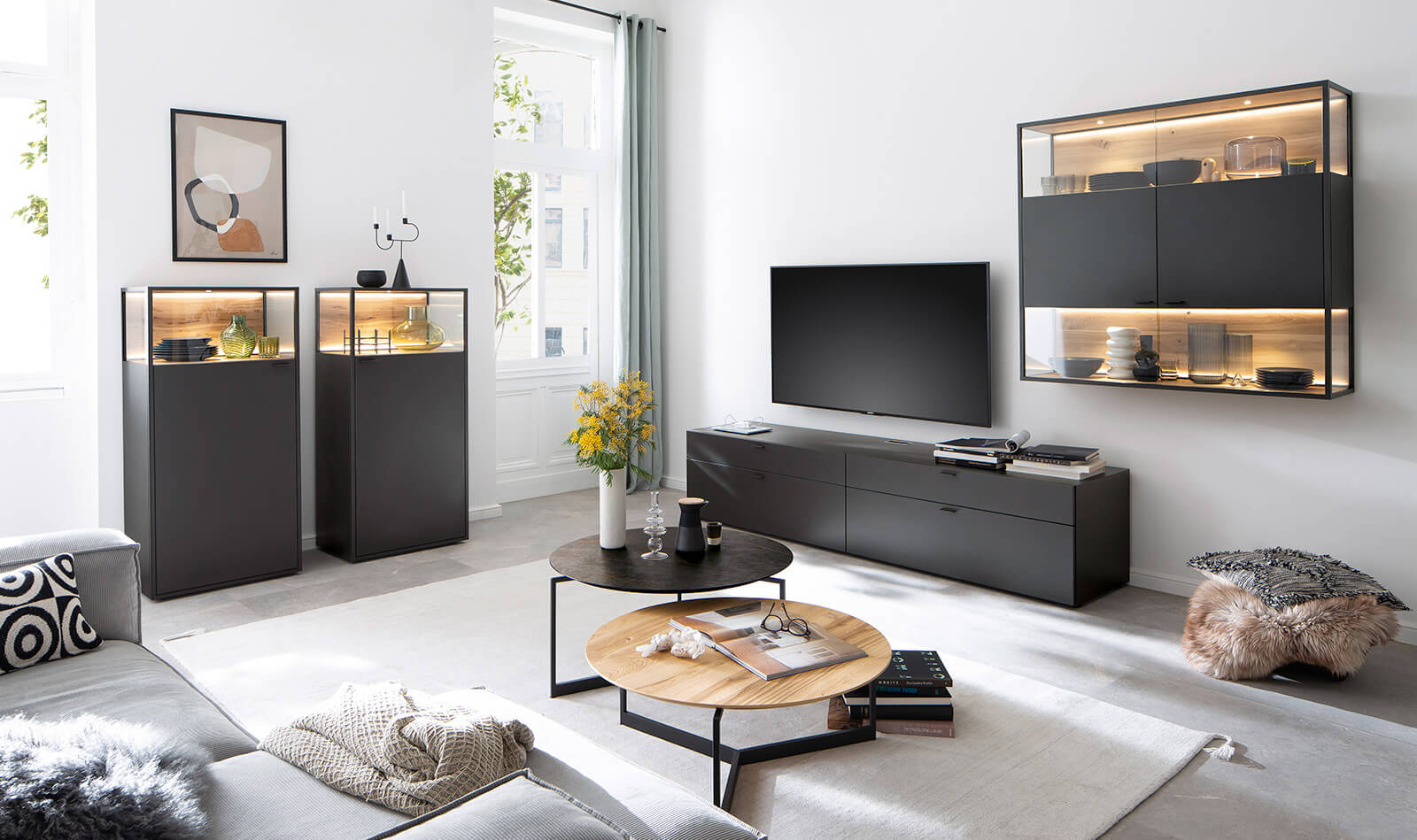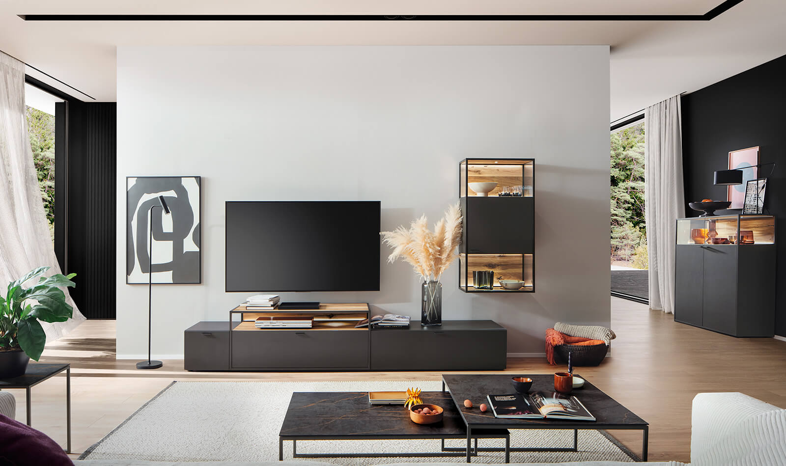 Die neue Kultur des Wohnens nimmt sich Zeit: Auch für Design. PLAN X6 zeigt dabei Klasse – auf die moderne Art. Das Besondere dabei sind die Metallelemente, die Oberflächen in Lack anthrazit matt oder Lack kristallweiß matt, die einen spannenden Kontrast zum natürlichen Holz bilden. X6 lässt Sie frei kombinieren – wenn Sie möchten. Viele Kombinationen und Solitärmöbel, wie zum Beispiel Sideboards, Highboards oder Vitrinen stehen zur Verfügung. Am Ende entscheiden nur zwei: Sie und Ihr Geschmack.