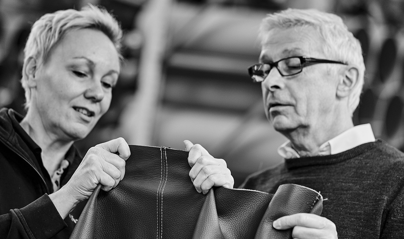 In unserer hauseigenen Polsterei verarbeiten wir feinste Materialien. Vom Einkauf bis zur Endkontrolle bleibt nichts dem Zufall überlassen. Beispiel Leder: Unser Gespür für Narbung und Haptik basiert auf vielen Jahrzehnten Erfahrung.